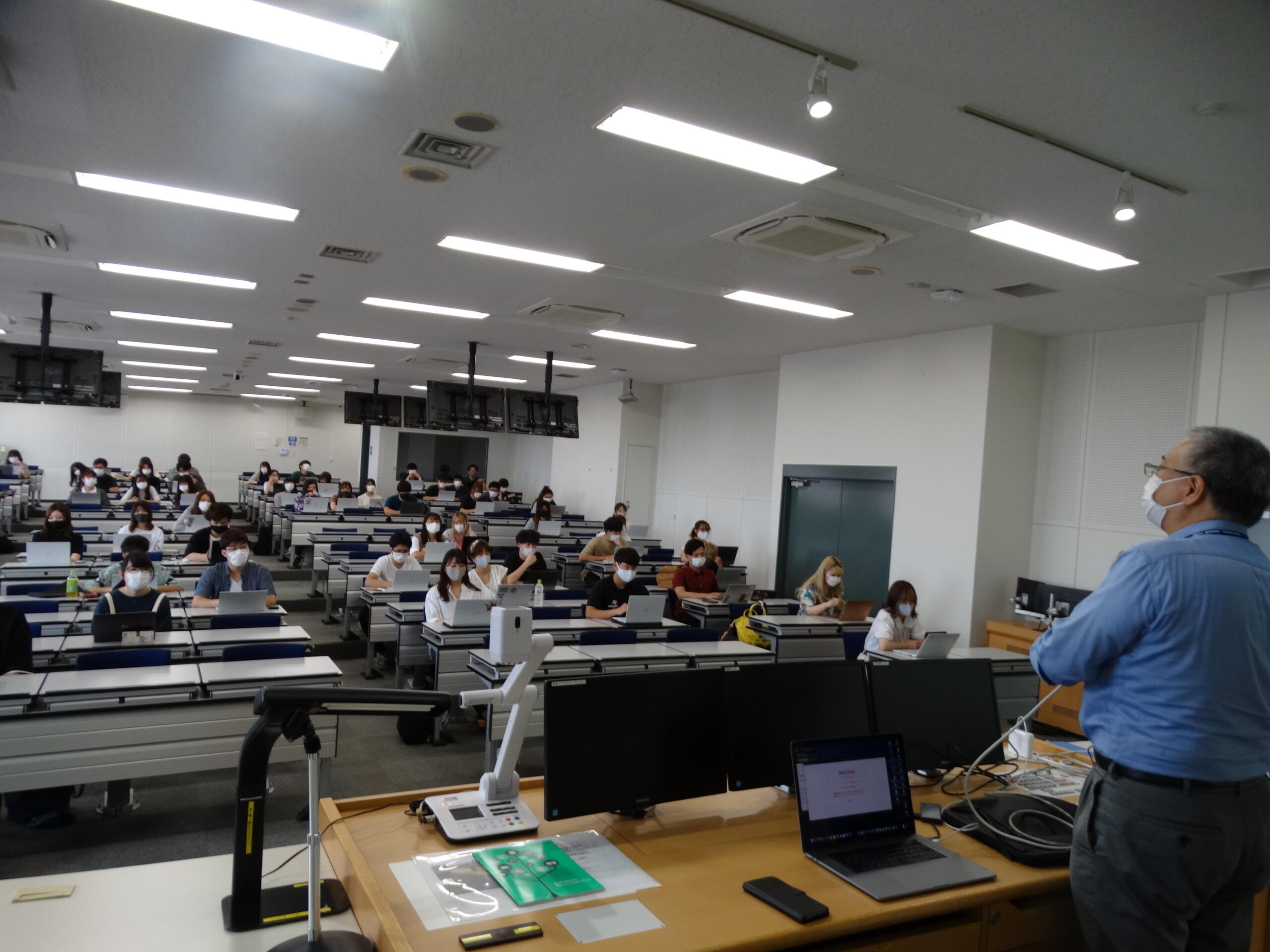 秋学期からは、オンラインを併用しながら対面形式の授業も実施。開講している授業科目の総クラス数1263のうち、約7割にあたる929クラスを対面形式とし、受講者数の多い大講義の授業については、オンデマンドを含めたオンライン授業で運用している。