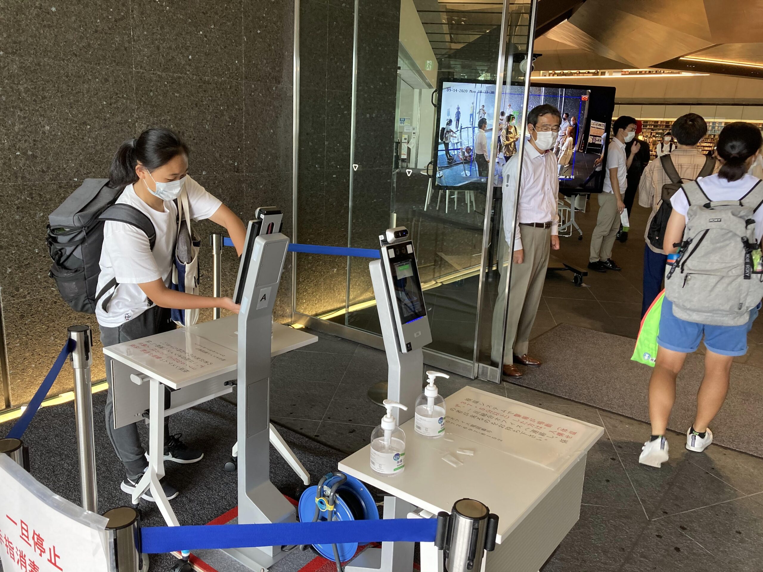 各キャンパスでは感染防止対策を徹底し、三密を避ける通行経路を設定。出入口付近では自動検温器による検温および手指の消毒のほか、マスクの着用の徹底を呼びかけている。さらに教室も、換気に加え、間隔を空けた座席配置としている。