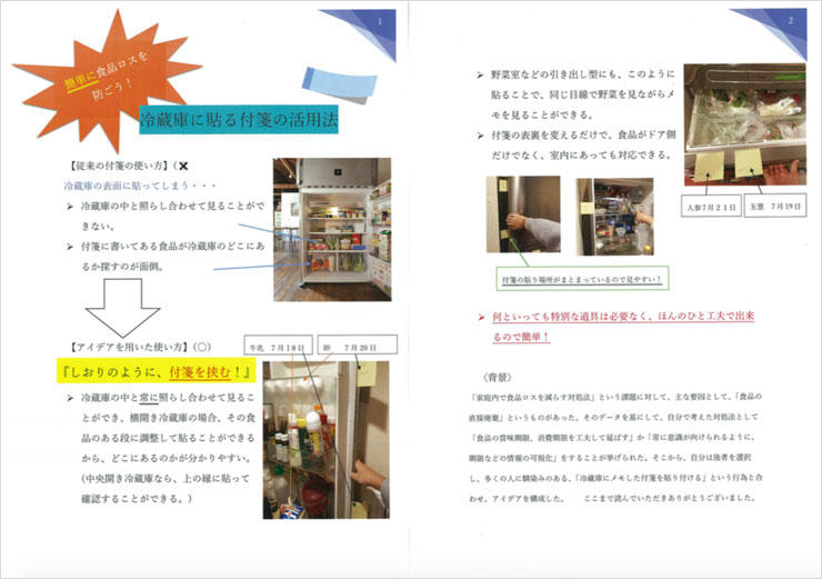 《2、食品ロス解決策/最優秀賞は「冷蔵庫に貼る付箋の活用法」》