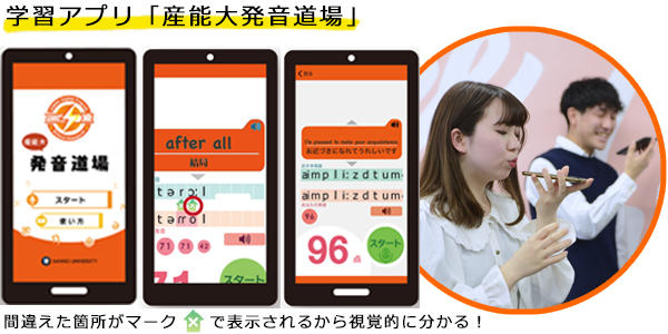 ◆発音練習アプリ「産能大発音道場」を使用し、自主学習も含め発音の徹底修得を目指す。