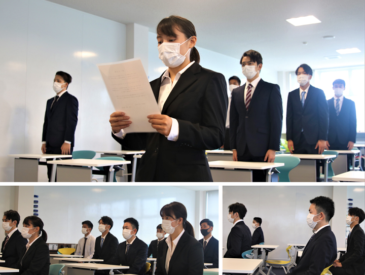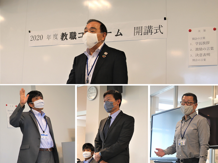 7月29日には第3期生の結成・開講式を開催。受講生の名前がひとりずつ点呼され、全員の起立・礼から始まった。その後、入口豊学長のあいさつをはじめ、大河正明副学長、中野友博学部長、川合英之教職センター長が3期生達を激励。学生らは真剣な眼差しで耳を傾けていた。最後に、自身の中学校時代の担任の先生をとても信頼し憧れたことをきっかけに教員を目指しているという荒井穂乃香さん(学校スポーツコース・3年次生)が学生を代表して誓いの言葉を述べ、開校式は終了した。