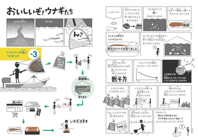 ・「僕たちの食べているウナギはどこから来たの?」「ウナギはどうして減っているの?」という疑問について、ウナギの一生をすごろくに見立て、遊んで学べる学習ツールを専門家とともに作成しました。
