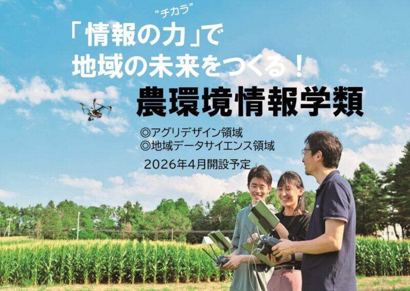 このたび設置届出が受理された「農環境情報学類」は、農学・環境学・情報科学といった分野を融合した学びにより、データサイエンス・DX(デジタルトランスフォーメーション)を活用し、資源の効率的な管理と利用を促進できる人材を養成することで、人と自然の共生を基にした持続可能な地域社会の実現への貢献を目的としている。