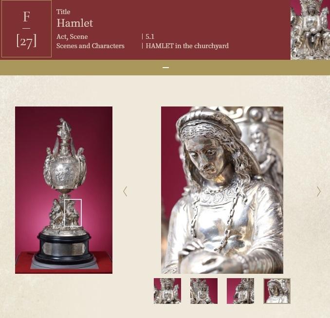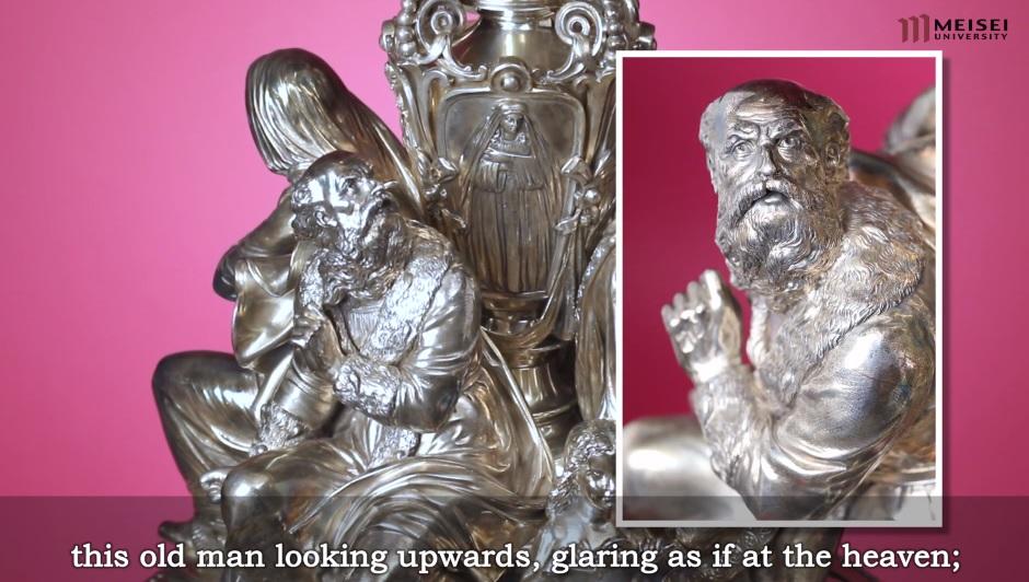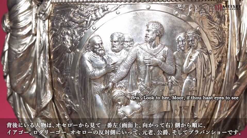 明星大学図書館が所蔵している非公開の純銀製の細密な美術工芸品で、シェイクスピア劇の名場面や登場人物の劇的瞬間をかたどった壺型の装飾置物(高さ1.3m、重さ43.0kg)です。