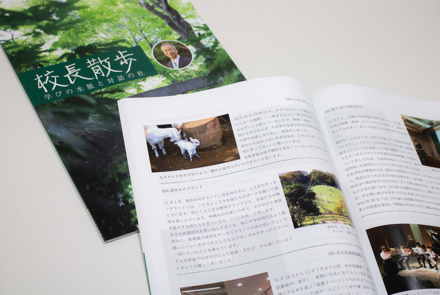 武蔵高等学校中学校(東京都練馬区/校長:杉山剛士)では、冊子「校長散歩-学びの水脈と対話の杜-」を今年6月に発行しました。杉山校長が昨年4月から始めた147本にも及ぶブログ「校長散歩」をまとめたものです。杉山校長の目線で見た生徒の様子や独自の学校行事、武蔵の四季などが写真とともに綴られています。