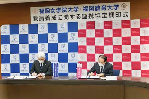 国立大学法人 福岡教育大学(福岡県宗像市/学長:飯田 慎司)と福岡女学院大学(福岡市南区/学長:阿久戸 光晴)との間で、5月21日に教員養成に関する連携協定が締結された。福岡教育大学が私立大学と連携協定を締結するのは今回が初めてのこと。