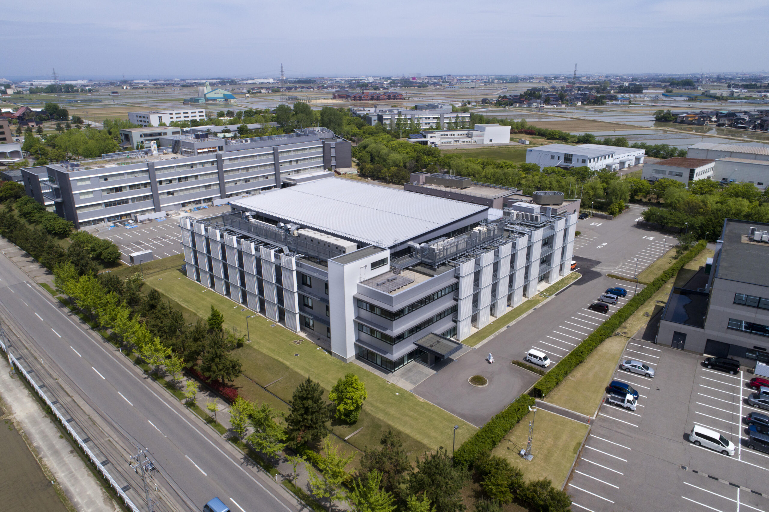 金沢工業大学 革新複合材料研究開発センターは文部科学省の国際科学イノベーション拠点整備事業に採択を受け2014年に設立されました。 2018年には文部科学省の地域科学技術実証拠点整備事業により実証拠点を増築し、オープンな研究開発エリアと秘匿性の高い実証開発エリアが隣接した、研究開発から社会実装までシームレスに研究開発ができる拠点となっています。