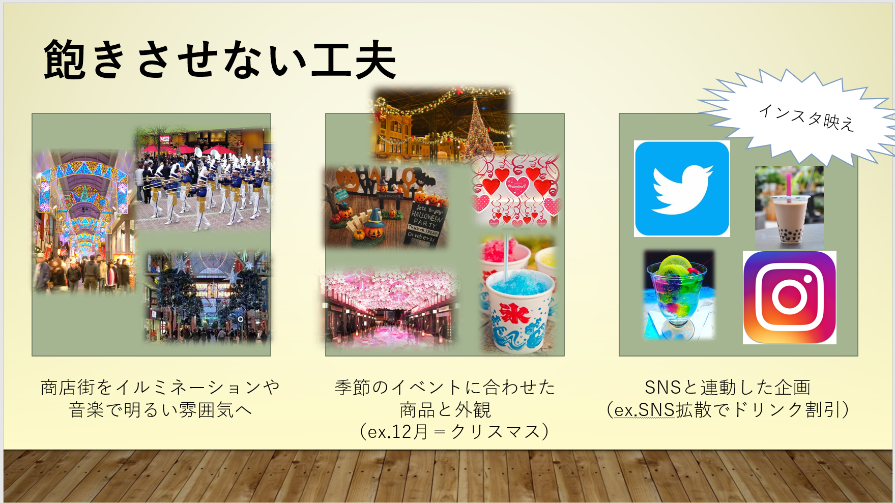 グランプリを受賞したのは、同学科4年の中⼭隼⽃さんらの提案した協働部門のビジネスプラン「寝屋川を元気にするネヤガーデン」。学校帰りや、仕事終わりの20~50代の男女を対象に、寝屋川市駅周辺の商店街などでふらっと立ち寄ってお酒や食事を楽しめる場やフリーマーケットなどのイベントを学生が主体となって企画・運営するというプランだ。
