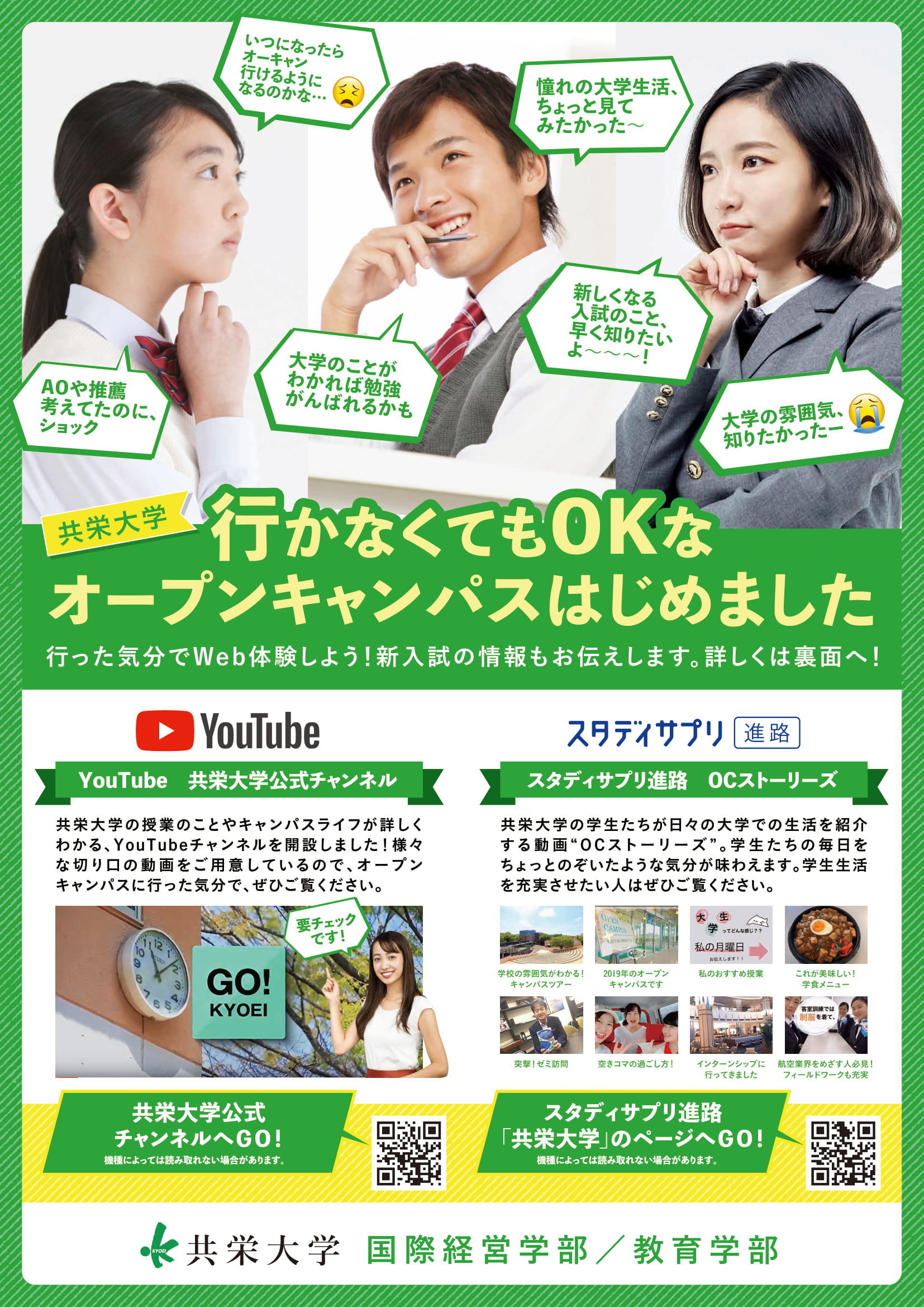 また、リクルート社の提供するサービス「スタディサプリ進路」内の「OCストーリーズ」では、共栄大学での日々の生活を学生たちが動画で紹介。大学生の日常を少し覗いてみることで、実際にキャンパスを訪れなくても、オープンキャンパスに行った気分を味わうことができる。