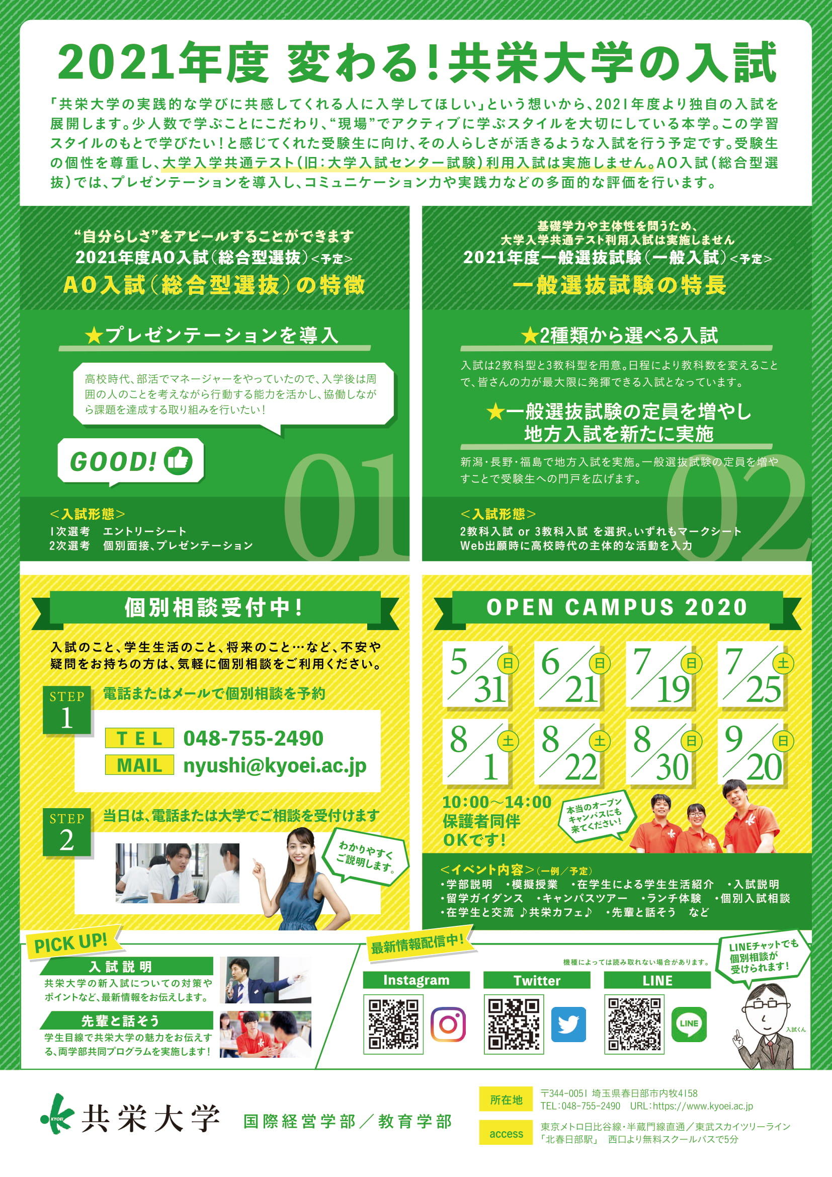 ・共栄大学の2021年入試にかける想い — 大学入学共通テストを利用する入試は行わず、受験生の個々の力を発揮できる入試を展開