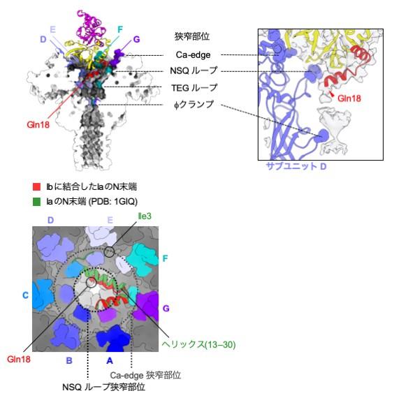 今回、ウェルシュ菌タイプEが産生する、アクチンをADPリボシル化する酵素Iaと、Iaを細胞内へ輸送するIb膜孔で構成されるイオタ毒素の複合体の構造を明らかにすることに成功。クライオ電子顕微鏡を用いた単粒子構造解析によって、Ib膜孔とIaが結合したIb膜孔の複合体を2.8~2.9オングストロームという高い分解能での構造解析に成功した。これにより、細菌毒素の膜透過を阻害する新規創薬の開発につながることが期待される。