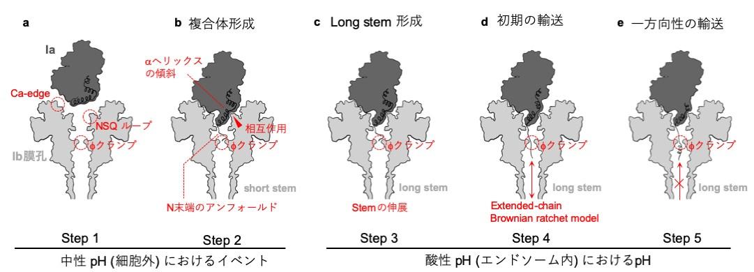 ウェルシュ菌などの細菌が産生する二成分毒素は毒素タンパク質(酵素成分)とこれを宿主の細胞に入れるための透過装置(膜孔)から構成されている。透過装置(膜孔)によって形成される膜孔口径はとても小さいため、酵素成分がこのトンネルを通過する際には、一度形成された三次構造が解かれなければいけない。しかしながら、それがどのようにして起きるのかは明らかにされてこなかった。