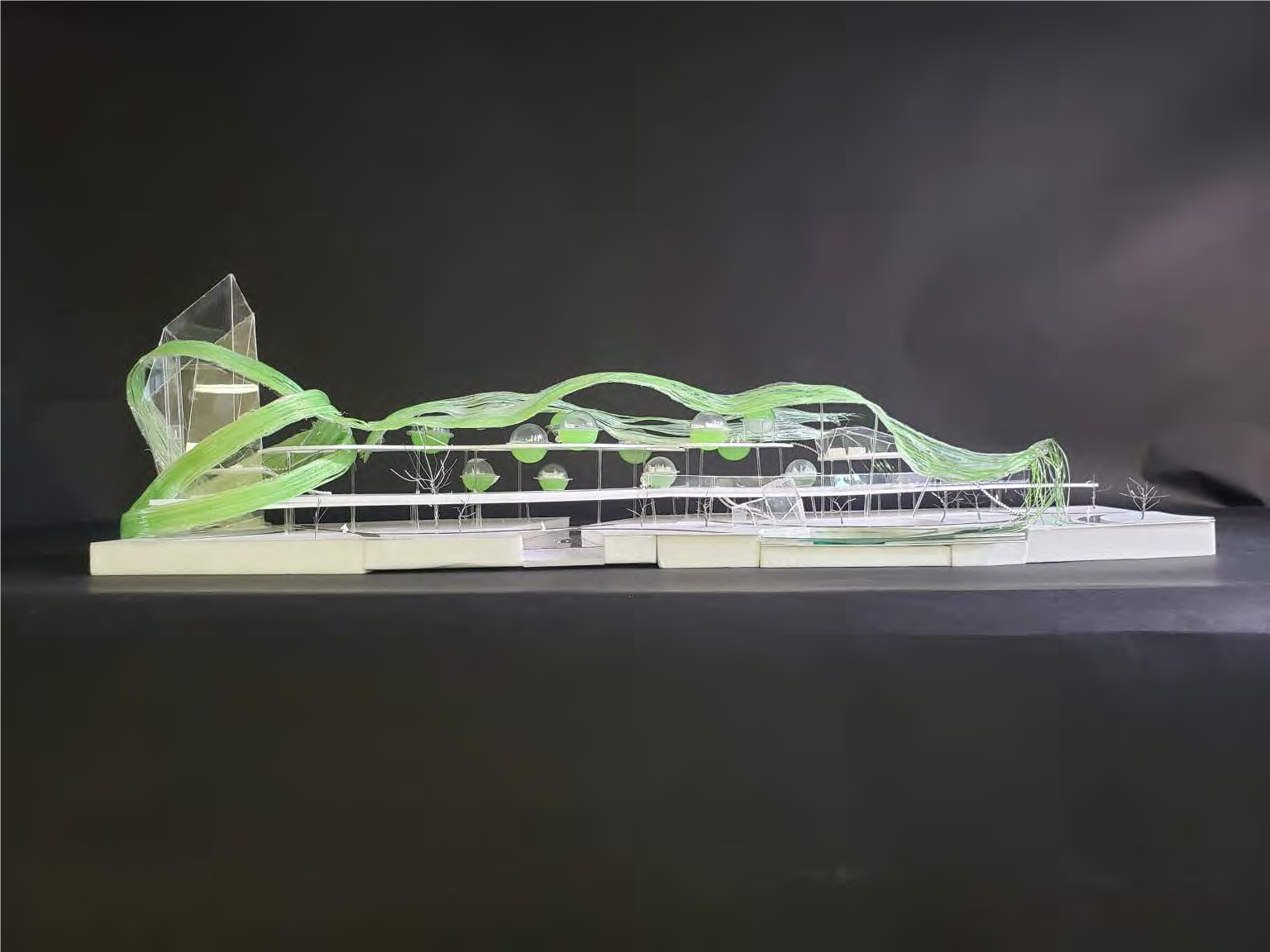 これまでの研究では、わずか30mlのPS II溶液でデジタル時計やLEDランプを1カ月以上点灯させることが分かっている。概算すると光合成パネル16平方メートルから20Wの発電が可能で、住宅に使えばパソコンやスマートフォンの充電、LED照明に十分使え、災害時にも対応可能。15.5分で1lの酸素(ケヤキ1本に相当)を発生させる。伐採樹木や廃棄野菜から酸素と水素をつくり発電するため「光合成建築」と名付けた。太陽光パネルとは違い、このパネルは透過性があるため、緑の光で覆われたデザイン性にも優れた建築が可能である。