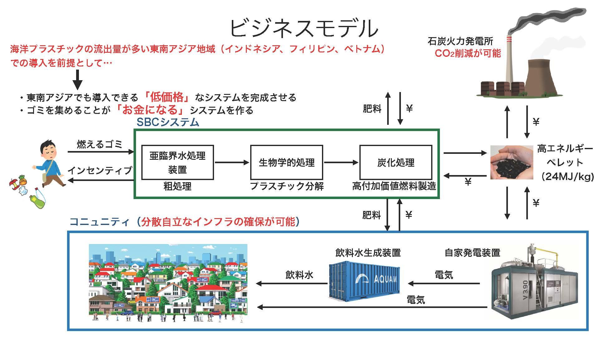 そのため、小倉教授らによるマイクロプラスチックの生物学的処理とともに、ごみの分別処理を必要としない粗処理のための亜臨界水処理装置の開発、取り除いたマイクロプラスチックをペレット化して飼料にしたり、メタンガス発酵させたバイオマス発電により電力を得たりする構想へと発展させ、5つの企業による「Team SBC」を結成しました。この「Team SBC」は、日本財団とJASTO(日本先端科学技術教育人材研究開発機構)、リバネスが立ち上げたプロジェクト・イッカクに事業採択され、2020年度から3ヵ年で総額1億5千万円の助成を受けることが決まりました。