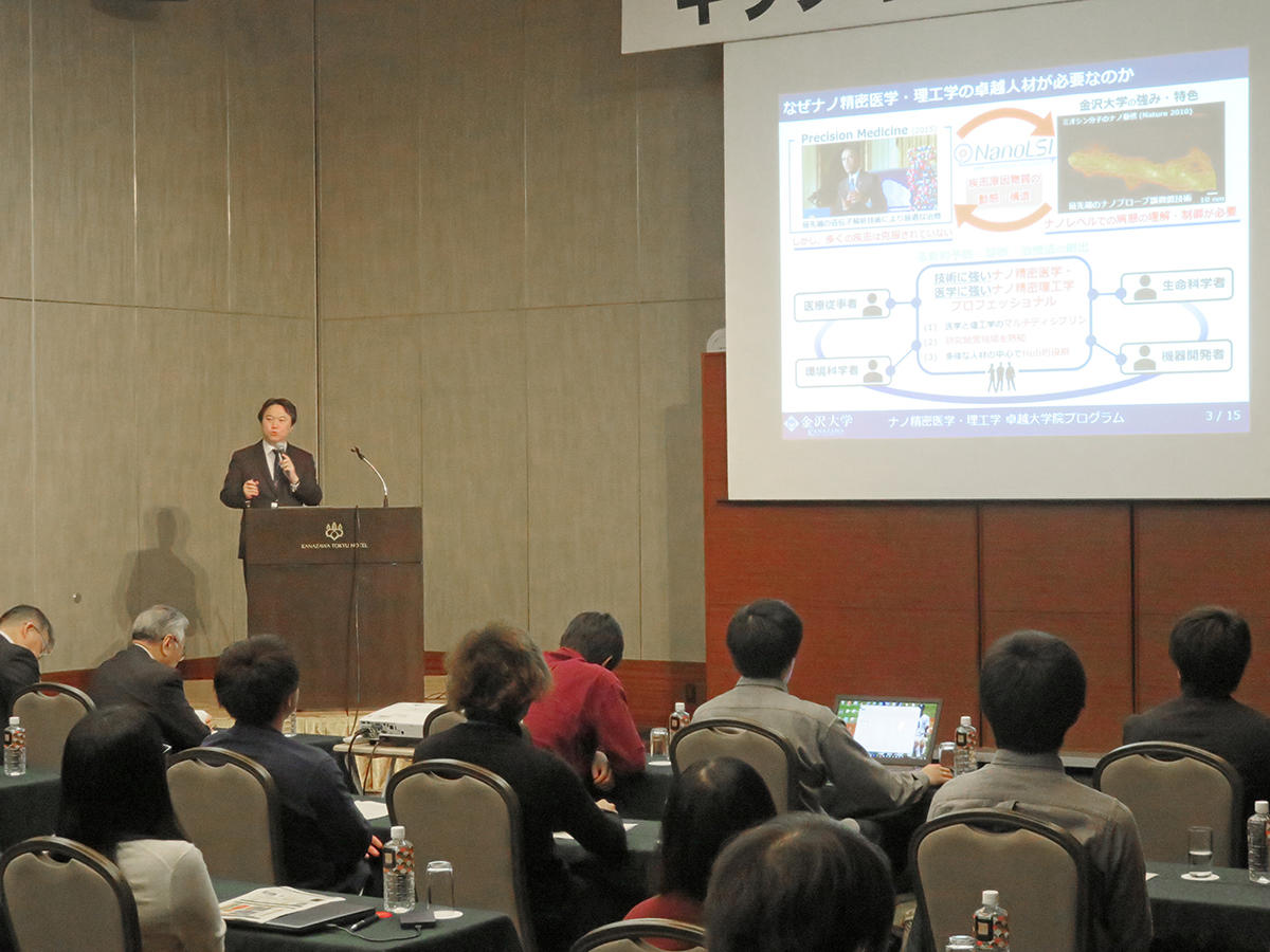 「ナノ精密医学・理工学卓越大学院プログラム」の4月からの始動を前に、2月8日に金沢市内でキックオフシンポジウムを開催。学内外から約70名が参加した。