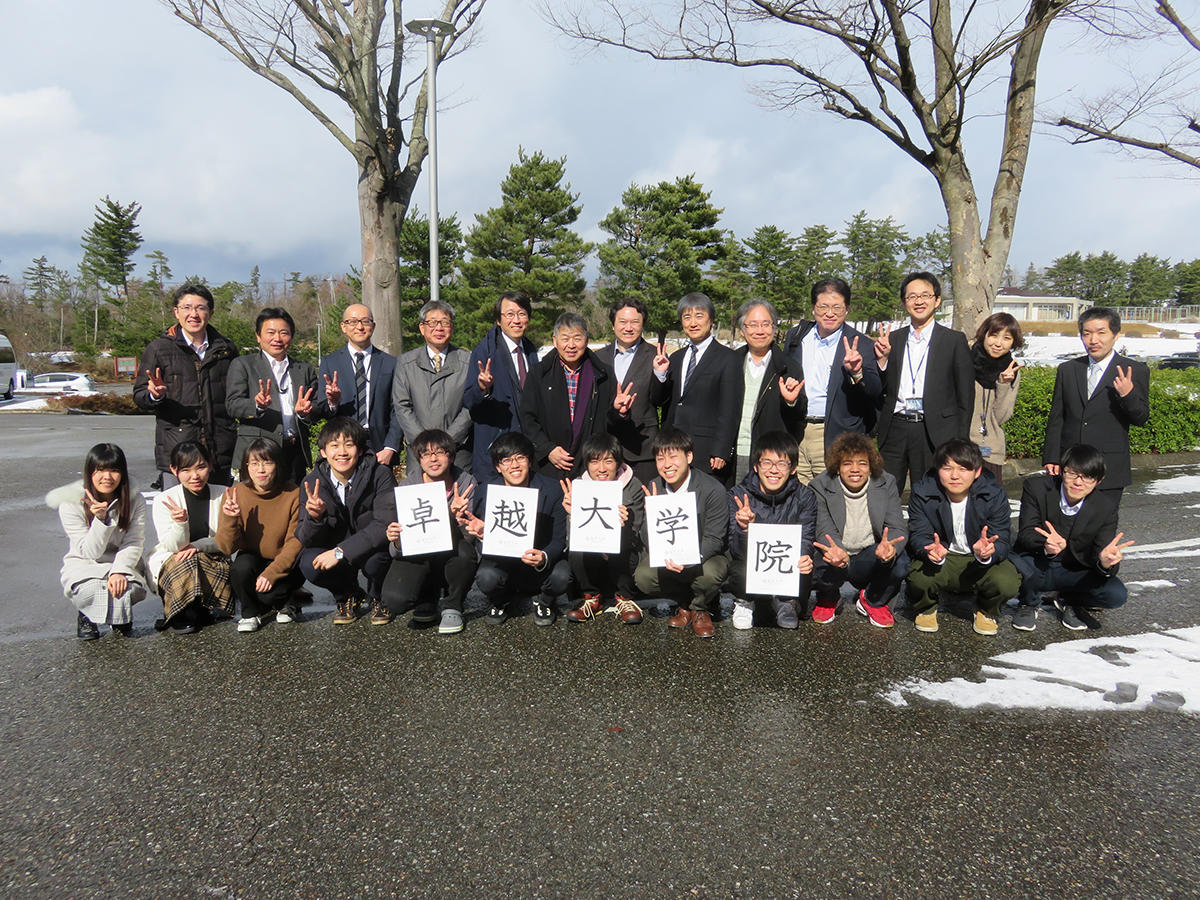 2月8日から9日には、石川県志賀町でプログラムの履修者選抜試験合格者を対象にした事前講義・演習を開催。山崎学長や連携先機関の民間企業担当者も参加する合宿形式で実施した。