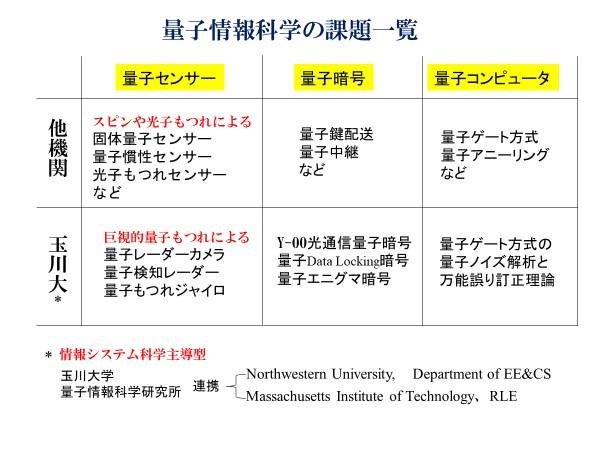 玉川大学は世界初の量子情報科学の総合研究推進機関として、多くの量子情報科学の学問的貢献を果たしてきました。1990年に世界初の量子情報科学の国際会議を創設し、20年にわたってその会議を運営してきました。それらの知見に基づき、将来の技術を予見しながら出口指向に基づいて、実用性に達する可能性の高い量子現象を利用する量子科学技術を開発しています。
