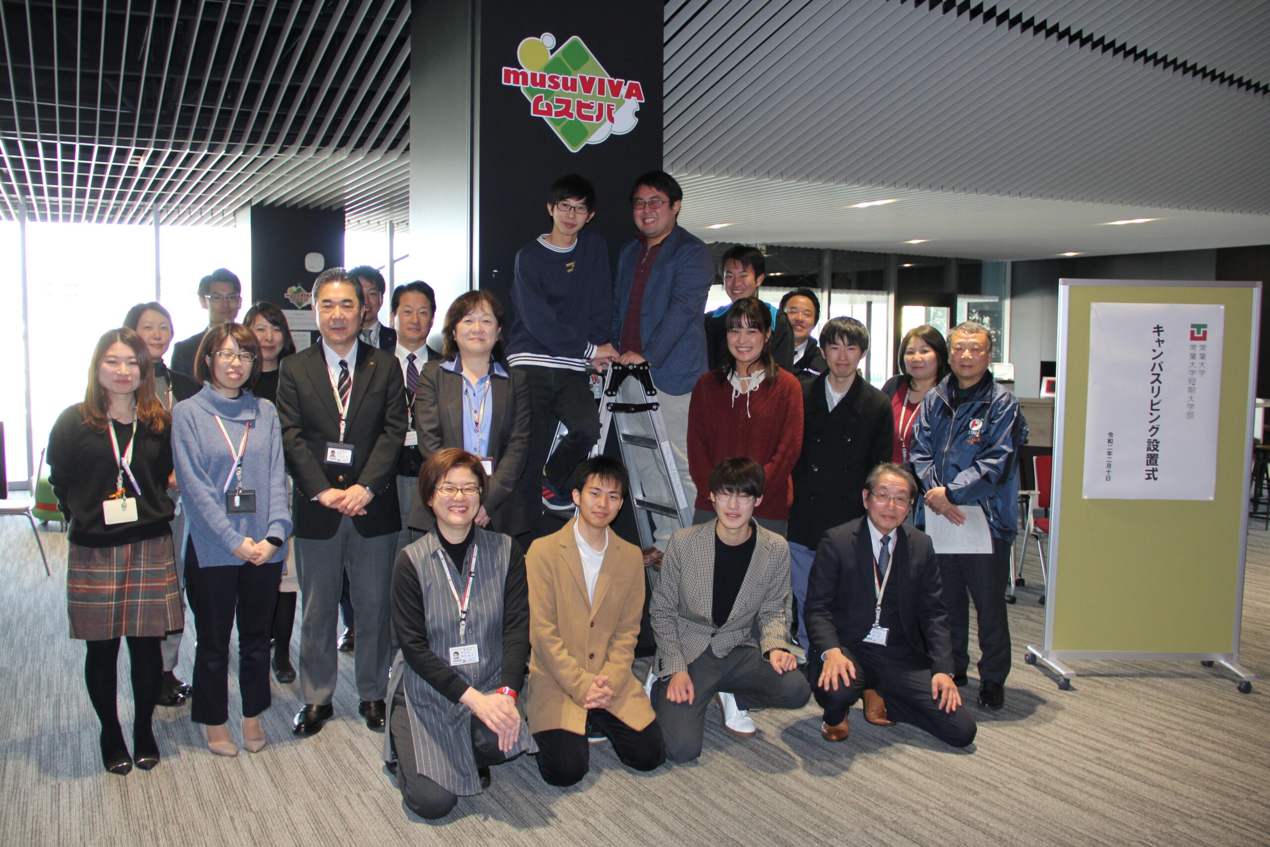 2月10日(月曜日)、常葉大学静岡草薙キャンパスのB・C棟2階にある学生共有スペース「Campus Living」の新愛称 manaVIVA(マナビバ)、musuVIVA(ムスビバ)が披露され、ロゴプレートの設置式が行われました。