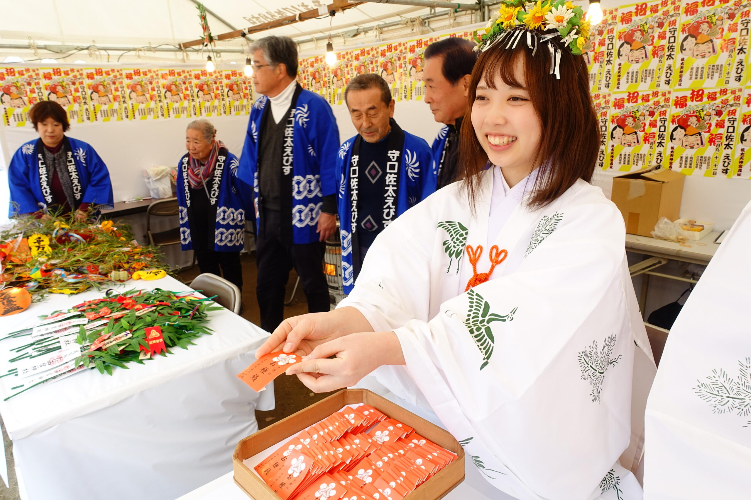 「神社並びに周りの地域の伝統文化を後世に伝えるという大切な役割を担っています。福娘の皆様が、ご一緒にその役目を果たしていただきましたこと、嬉しく思います。地域の方も大変喜んでいらっしゃいました。外国人留学生の方の鈴払いなどのご奉仕の所作も美しく、来年度も是非お願いしたく思います」