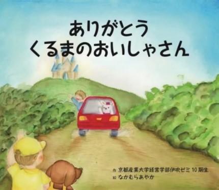 そして、自動車関連企業の協力を得ながら、自動車整備士をテーマとした絵本「ありがとう くるまのおいしゃさん」を制作。制作した絵本を京都市内に111あるすべての幼稚園に寄付するほか、実際にゼミ生が11の幼稚園を訪れて読み聞かせを実施した。また、制作した絵本をより多くの子供たちに知ってもらうため、読み聞かせ動画を2019年12月14日に「YouTube」へ公開。再生回数は2,000回を超え、多くの方に視聴されている。