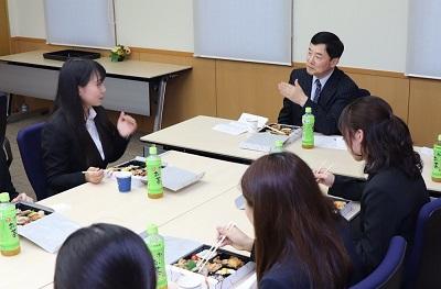 GPA奨励賞授賞式の後、磯岡学長と受賞者による学長昼食懇談会を開催しました。磯岡学長から、今回の成果を称えると同時に、学生のリーダーとなってもらいたいとの期待の言葉が贈られました。