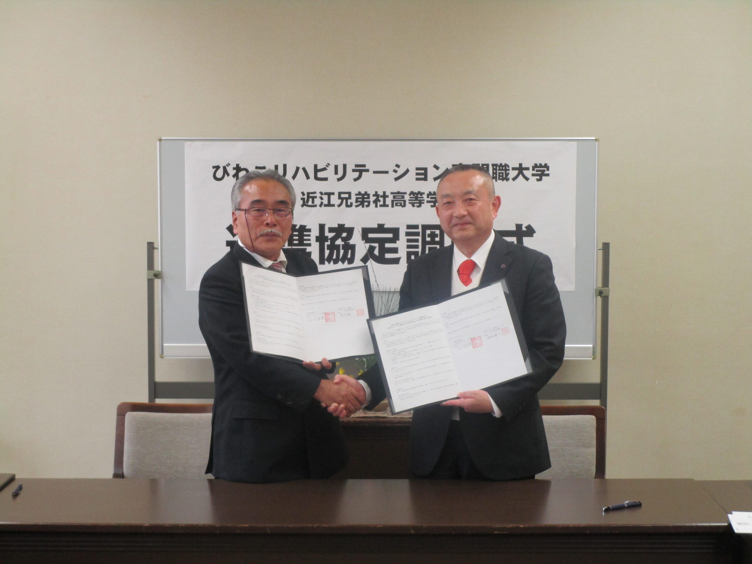 学校法人藍野大学 びわこリハビリテーション専門職大学(学長:山川 正信)は2020年1月14日、学校法人ヴォーリズ学園 近江兄弟社高等学校(校長:池田 健一)と高大連携に関する協定書を締結しました。今後、「大学施設での模擬授業の実施」や「高等学校への出前授業」、「高等学校クラブ活動支援」などの教育交流・連携活動を行っていくことになります。
