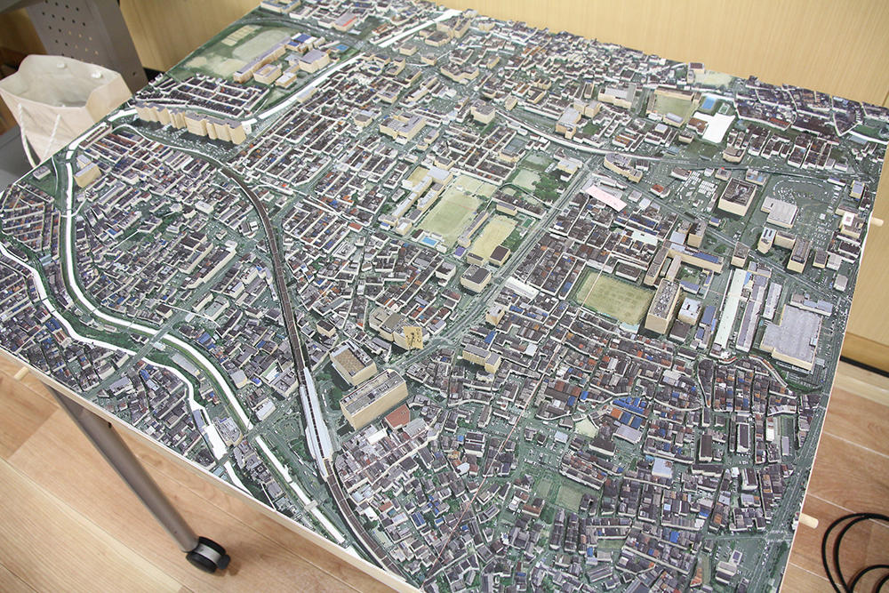 駅前キャンパス(大阪府寝屋川市)で開催された「建築作品展」では、工学部建築学科2年生が製作した住宅のジオラマやパース(完成予想図)など約15点を展示。寝屋川市内に実在する公園近くの敷地に「水辺の集合住宅」を作ることをテーマに、機能性や快適性、協調性を追求しながら環境にも配慮した住宅作りに挑戦しました。