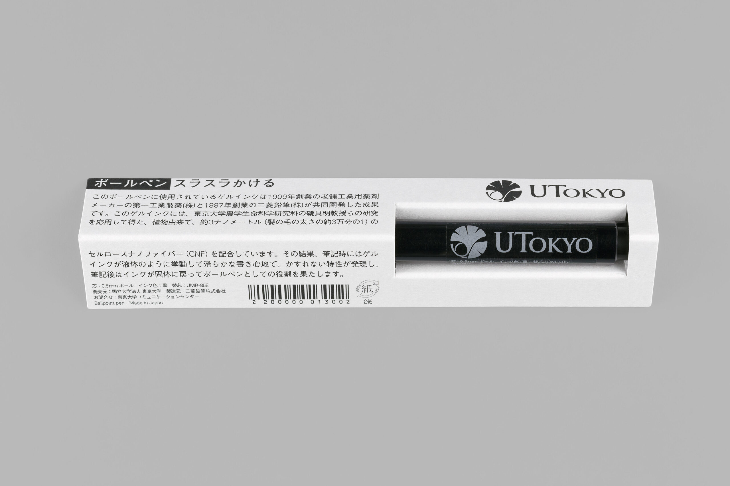 なめらかな書き心地のボールペン 東京大学コミュニケーションセンターより発売 「UTokyo Goセルロースナノファイバー(CNF)配合ゲルインクのボールペン 黒」