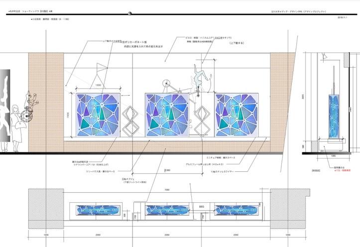 9月下旬マルイ町田店担当者の方と打ち合わせし、10月から学生の中で企画班・模型制作班・広報班・記録班に分かれ、このプロジェクトを進めてきました。10月31日にマルイ町田店担当者の前でデザインコンセプト、ポスターのプレゼンテーションを実施、フィードバックを受けさらに試行錯誤し、現在展示物の制作を進めています。