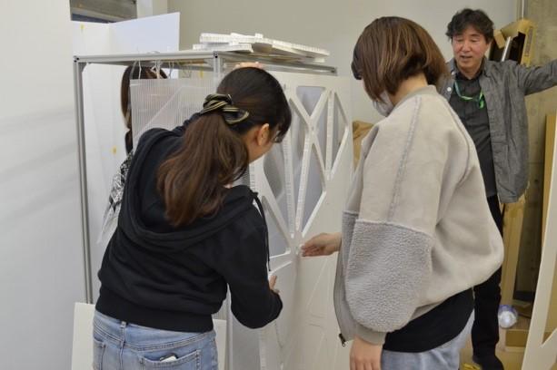今回のプロジェクトに参加した学生は23人です。学生の指導には百貨店などの空間デザインを手がけてきた芸術学部メディア・デザイン学科、志村雄逸教授があたっています。