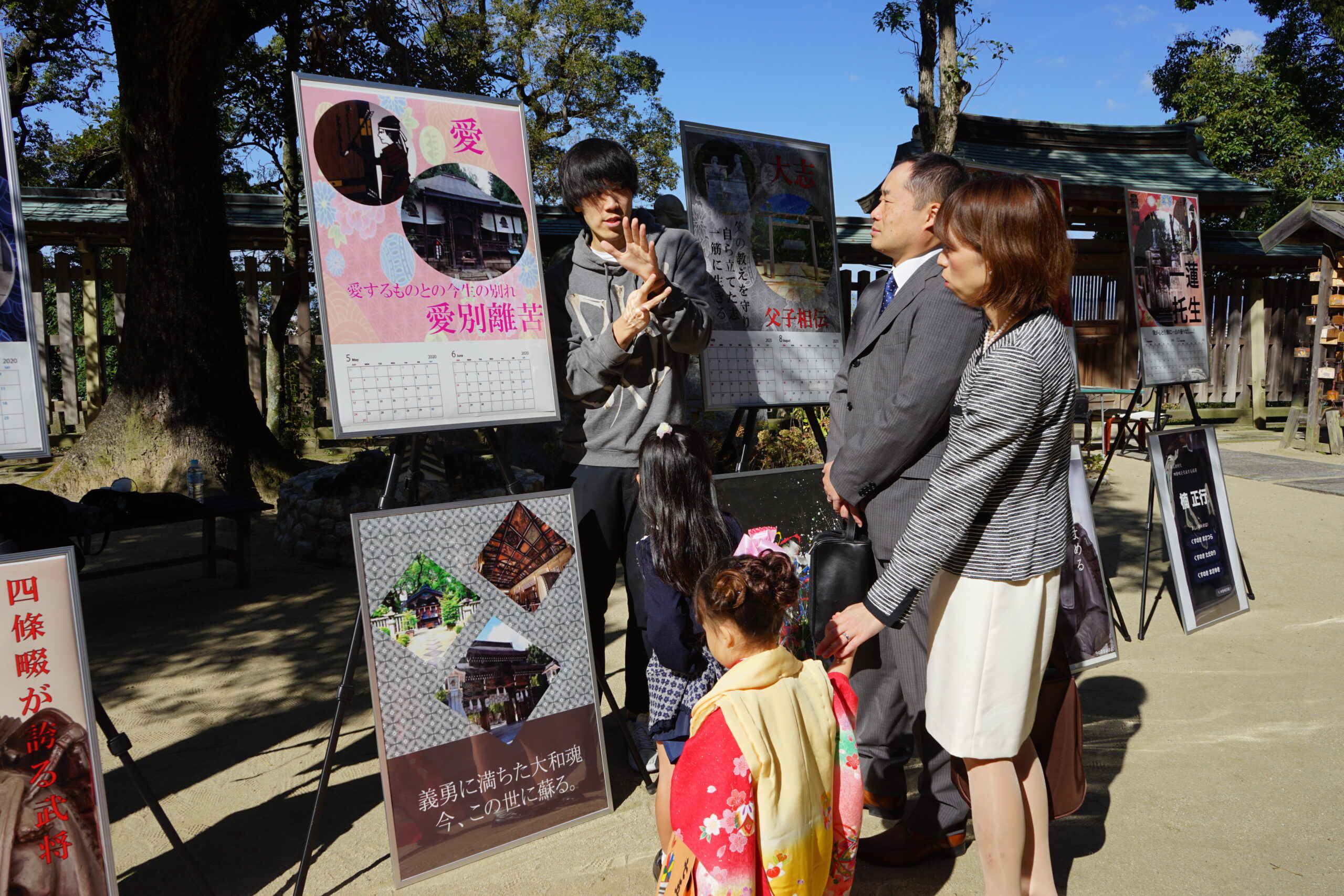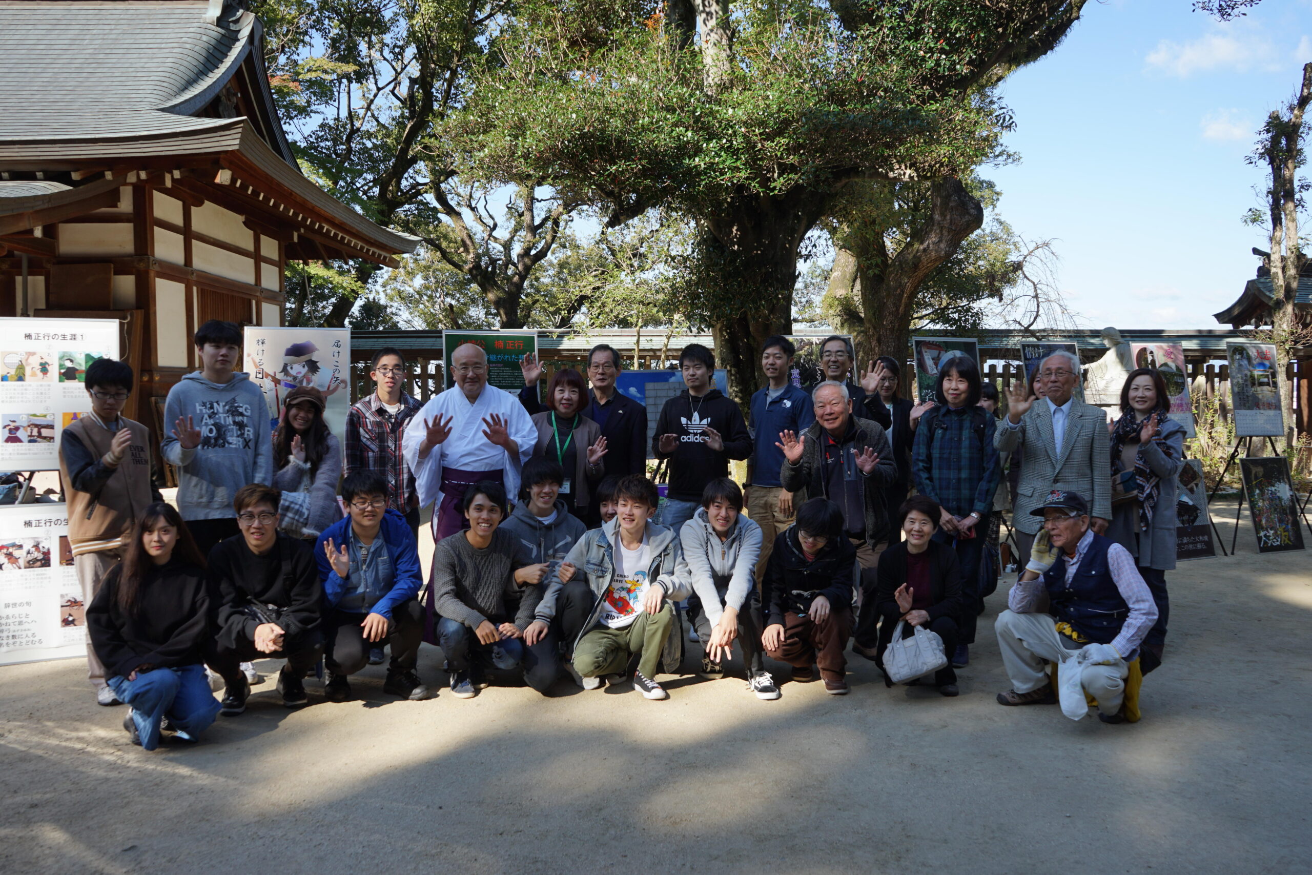 南北朝時代の武将・楠正行(くすのきまさつら)を主祭神とする四條畷神社で11月10日(日)、本学総合情報学部デジタルゲーム学科の社会プロジェクトチームがポスター発表を行いました。
