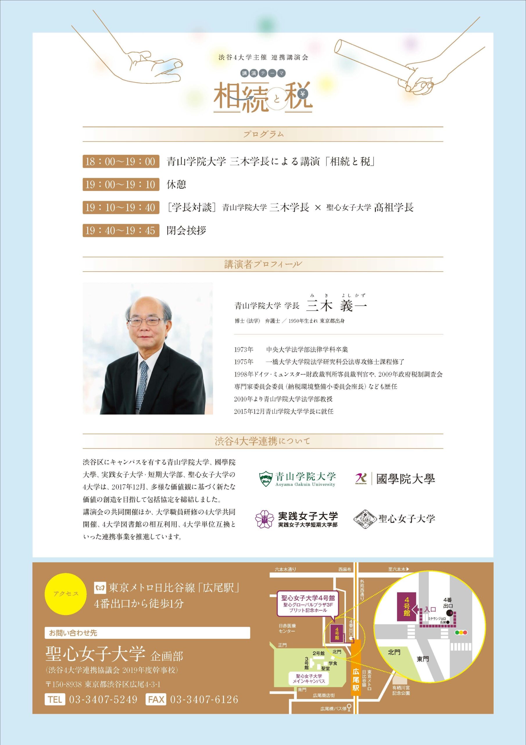 ・18:00~19:00 青山学院大学 三木学長による講演「相続と税について」