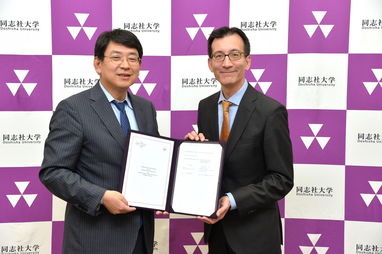 11月1日、高杉 直 同志社大学法学部長・法学研究科長とChristian Mahr国際刑事裁判所 書記局対外関係局長が出席し、同志社大学今出川キャンパスにて調印式が行われました。
