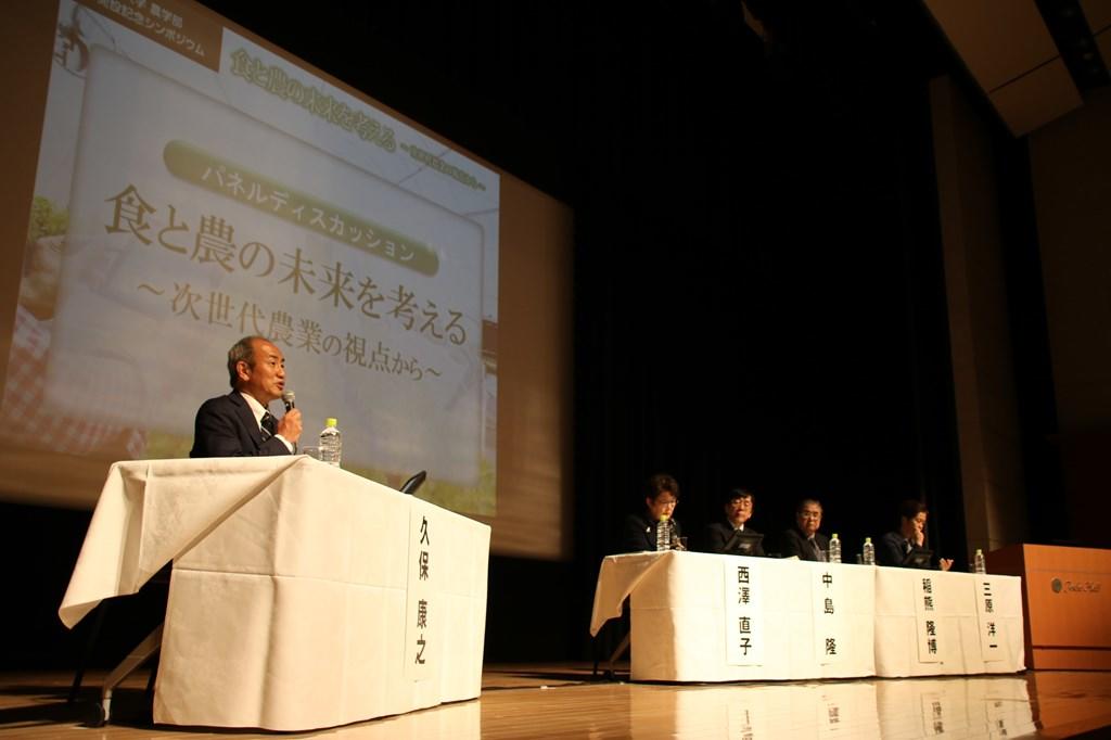 基調講演後には、久保康之客員教授(学部長就任予定者)をコーディネーターに、4人のパネリストによるパネルディスカッションを実施。ITを駆使した新しい農業や企業での野菜飲料の開発エピソード、今後のアグリビジネスの可能性などについて活発な意見交換が行われた。