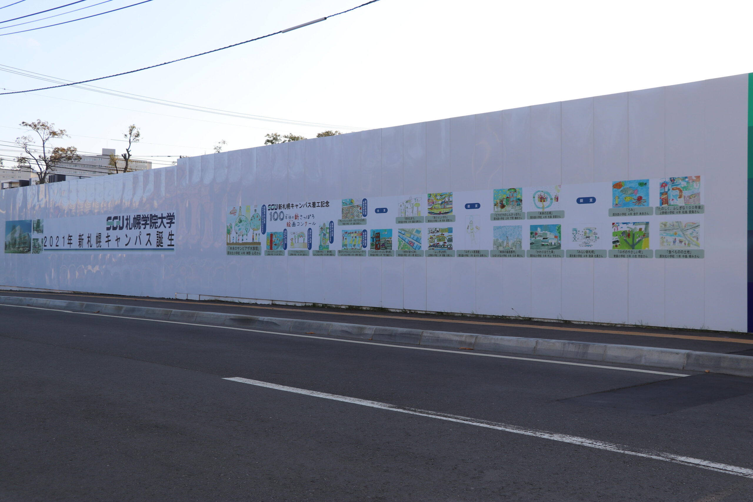 札幌学院大学は、2021年4月に誕生する新キャンパス「新札幌キャンパス」(札幌市厚別区)の工事を2019年10月に着工した。これを記念し、同大では新キャンパス建設予定地近隣の小学校児童を対象に「100年後の新さっぽろ 絵画コンクール」を開催。入選作品21点を2019年10月末から約1年間、新キャンパスの工事現場を囲う仮囲いに掲出している。