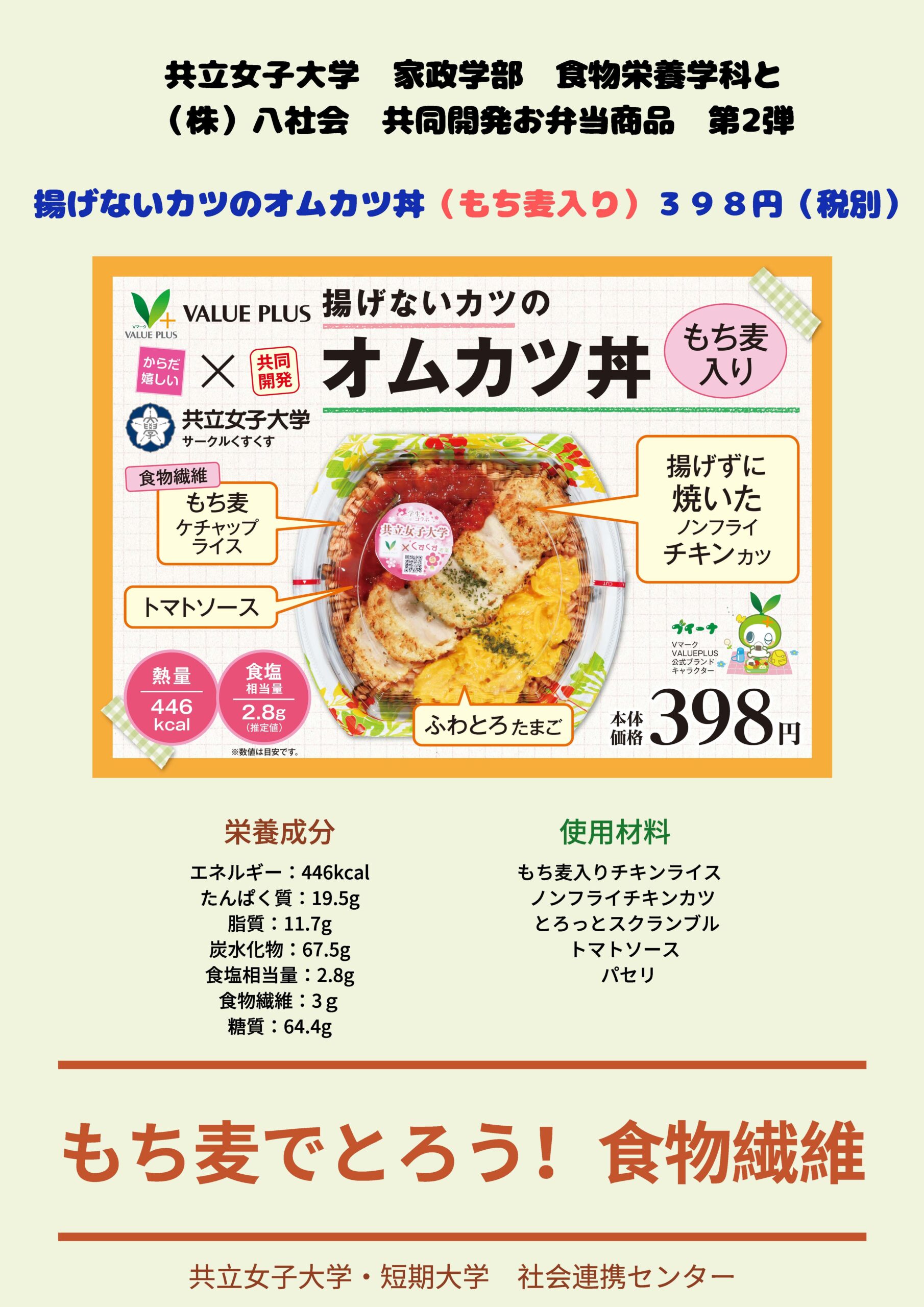 共立女子大学と株式会社八社会がお弁当コラボ第2弾として「もち麦丼」を共同開発! — 11月1日(金)より首都圏私鉄系スーパー(約330店舗)で販売開始 —