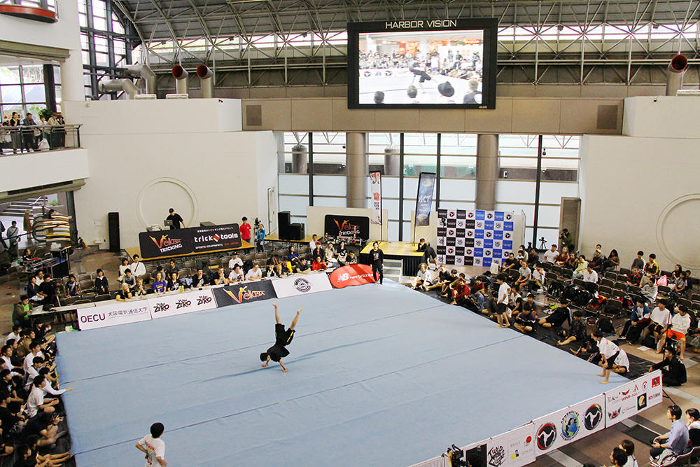 日本の空手の道場などが米国に渡り、独自に発展した「トリッキング」。キックやフリップ(宙返り)の難易度や高さ、完成度、着地とそれらをつなぐ技の滑らかさや難易度を総合的にジャッジする「トリッキングバトル」は年々認知度が高まっており、現在の競技人口は世界で約3万人。全日本大会と世界大会が同時に開催されるとあって、世界のトップ選手をはじめ10か国から選手約100人が出場しました。