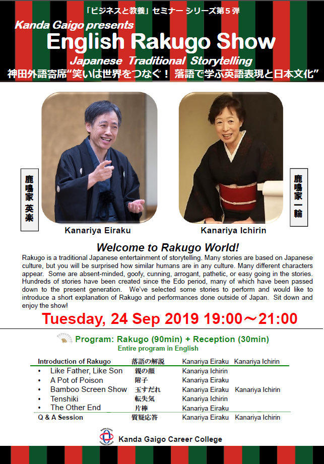 神田外語グループ 神田外語キャリアカレッジが9月24日に”English Rakugo Show”(英語落語)を開催