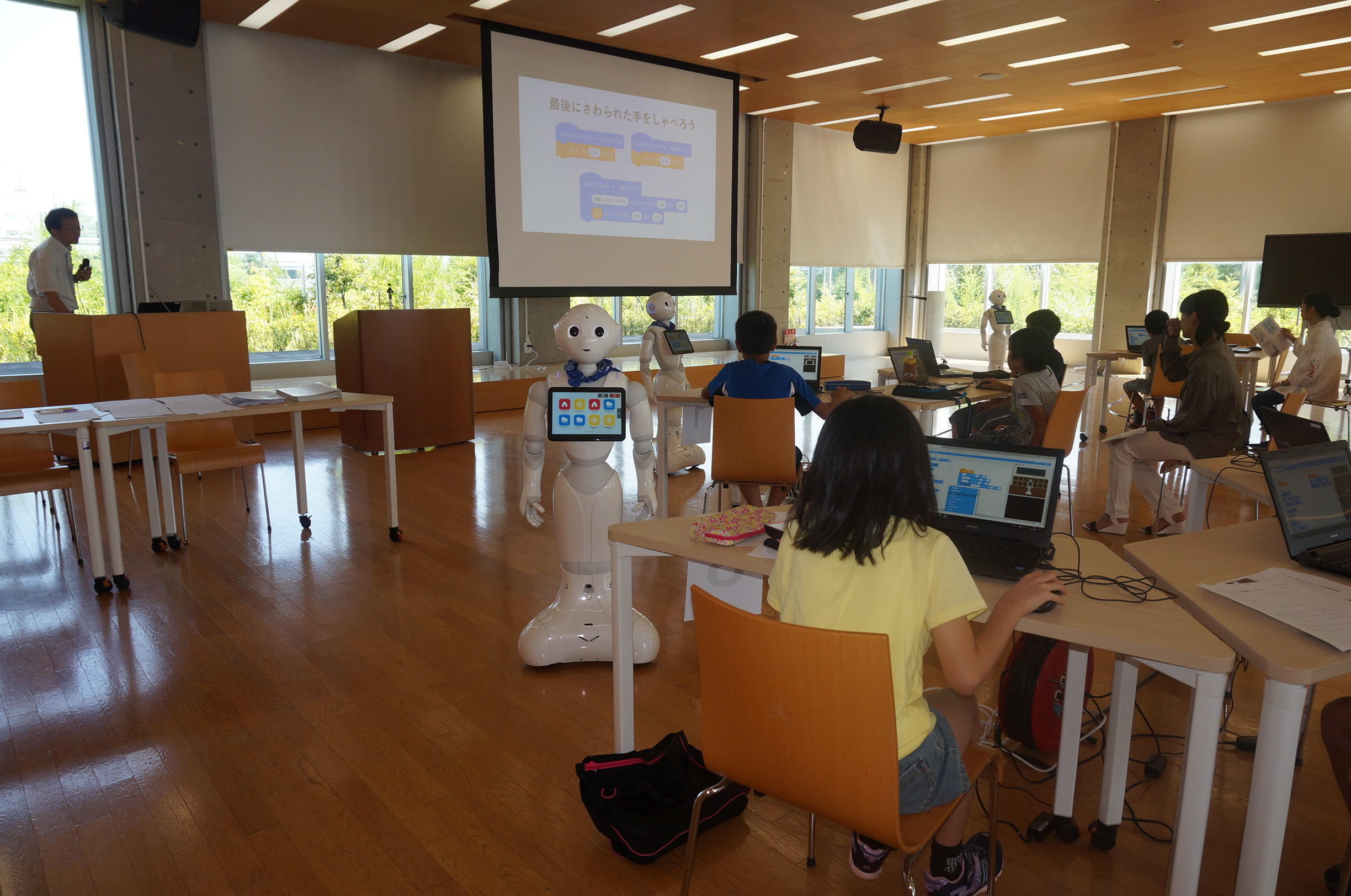 本学は、2020年度からの小学校プログラミング教育の必修化に先立ち、ICT教育に積極的に取り組んでおり、この度、親子を対象としたプログラミング体験教室を開催することになりました。この体験教室では、初心者にも簡単なプログラミングツール「Robo Blocks」を使い、「Pepper」のプログラミングを学ぶことで、ロボットと人間の共生社会を親子で体感することを目指します。