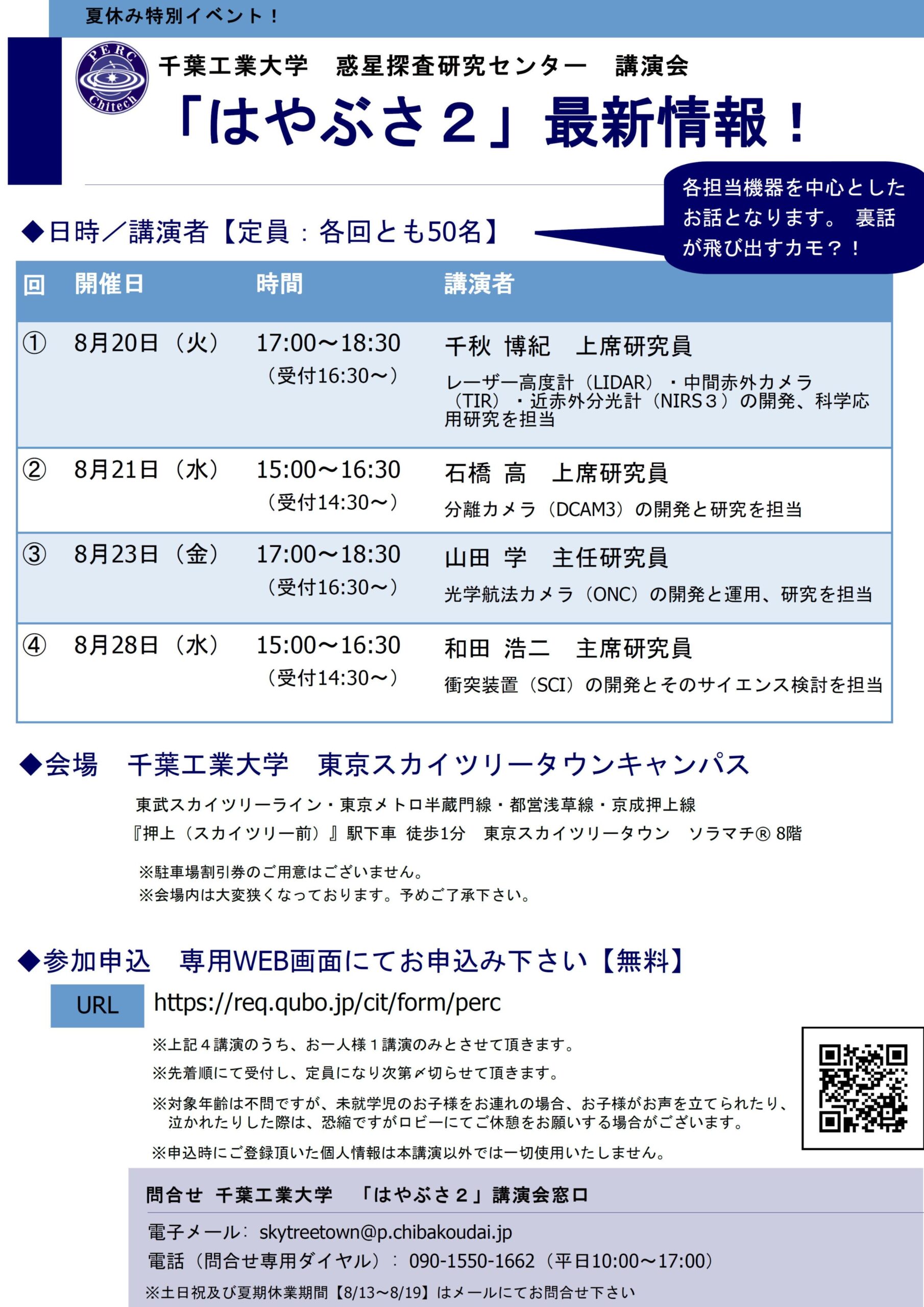 千葉工業大学 夏休み特別イベント 惑星探査研究センター講演会【「はやぶさ2」最新情報!】を開催します