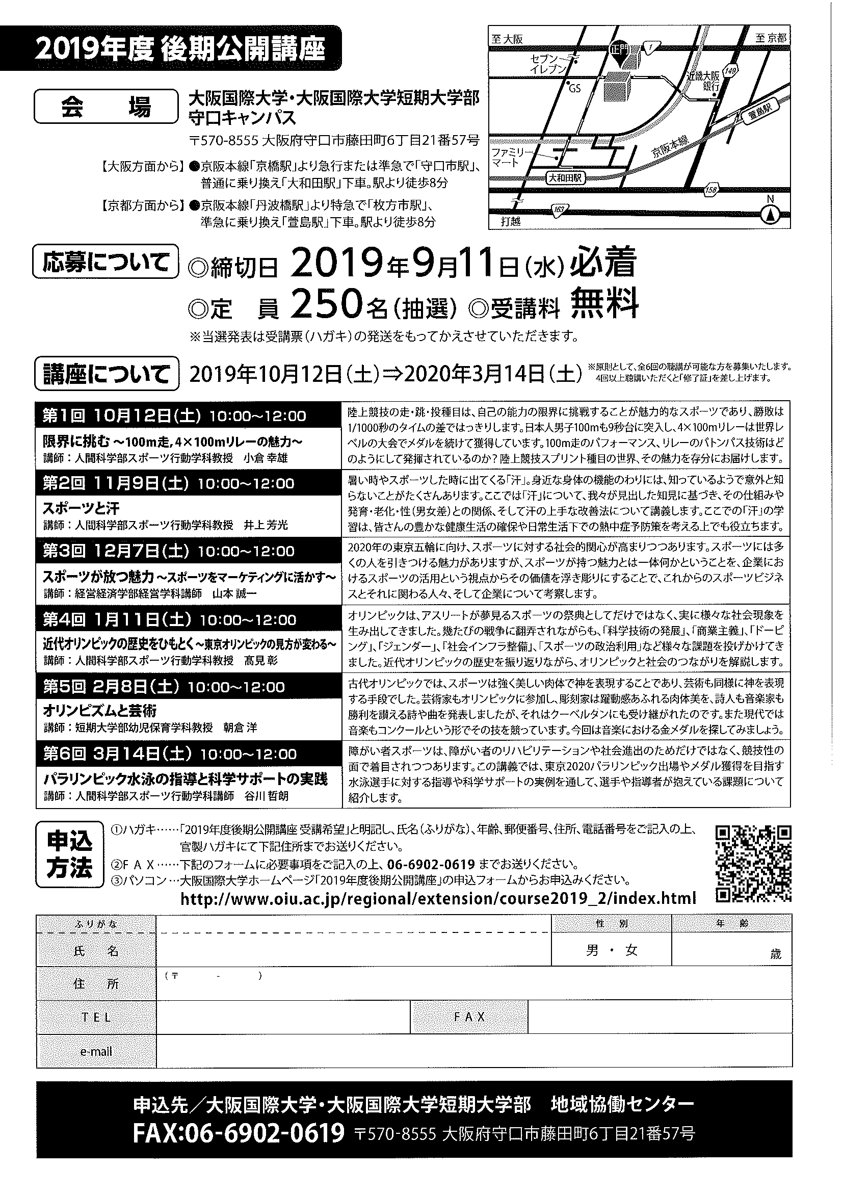 ◆大阪国際大学・大阪国際大学短期大学部2019年度後期公開講座
