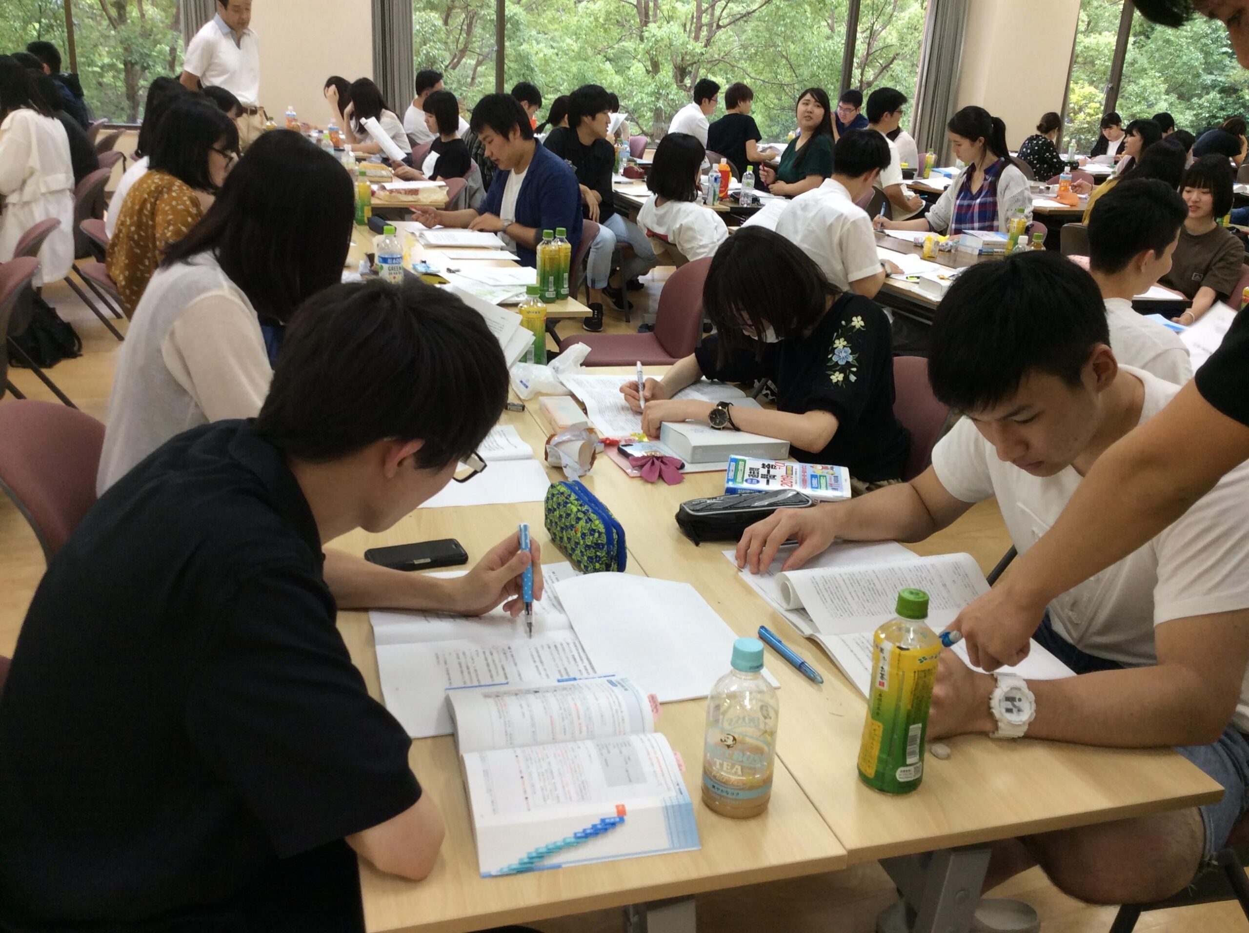 教員の指導のもと、模擬試験やグループ学習、卒業した先輩の合格体験談を伺うなど1日8時間勉強し、充実した2日間となりました。