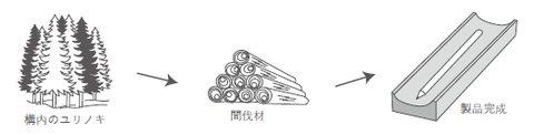 間伐とは、健全な森林を保ち木材の生長を促すために、混み合った木や弱った木を間引く作業のことをいいます。その間伐で得られた木材は「間伐材」とよばれます。本来であれば廃棄されてしまう間伐材を積極的に有効活用することが間伐の実施促進につながり、その結果豊かな森林が育まれていきます。