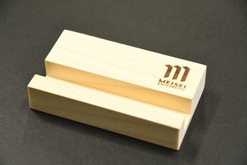 間伐→製材→アイテム制作を経て、最後に本学の焼き印を入れて完成したスマホスタンドとペントレイは、本学オリジナルグッズとしてオープンキャンパス来場者などに配布予定です。