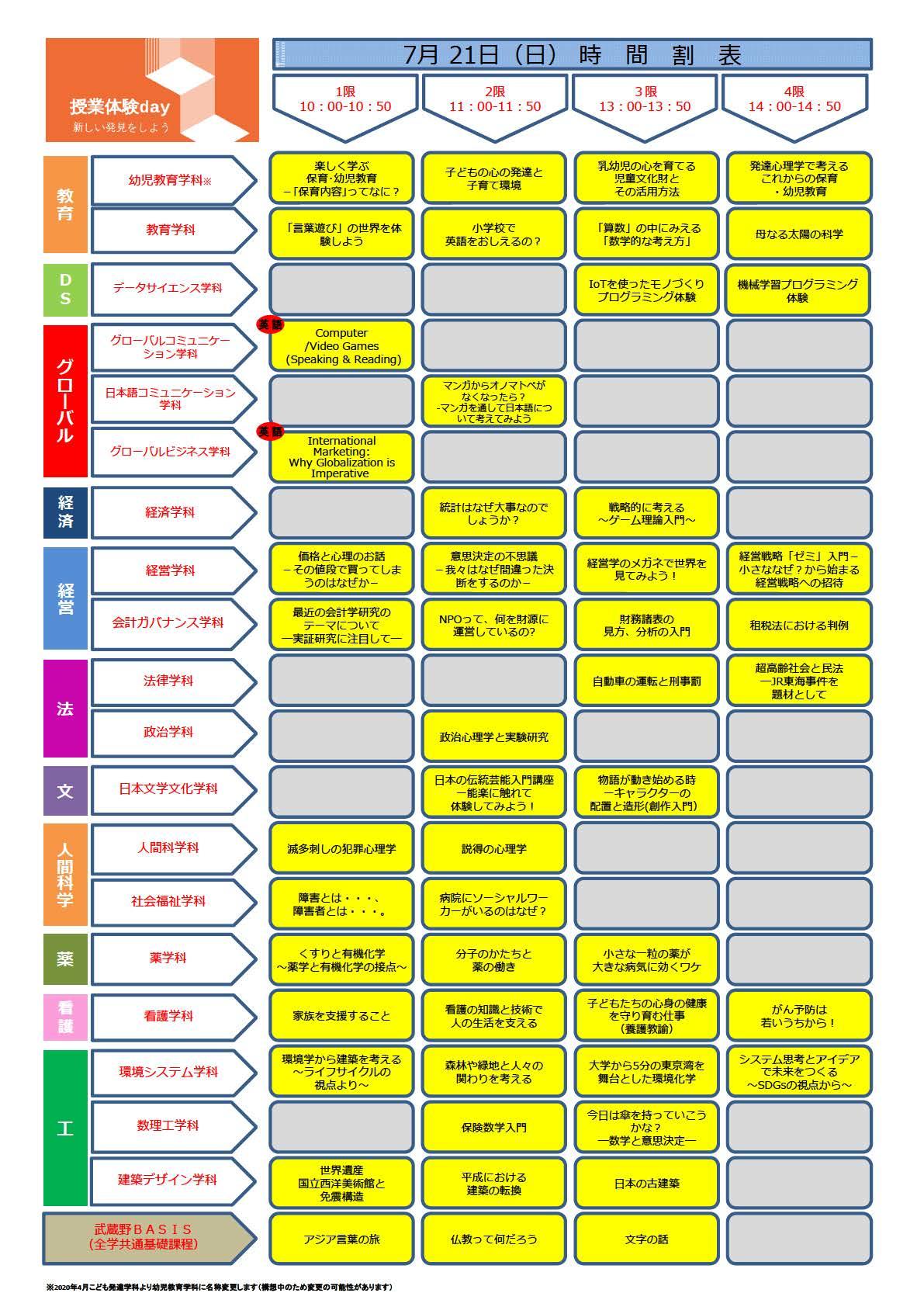 授業の時間割や予約は、武蔵野大学オープンキャンパス特設サイトをご覧ください。