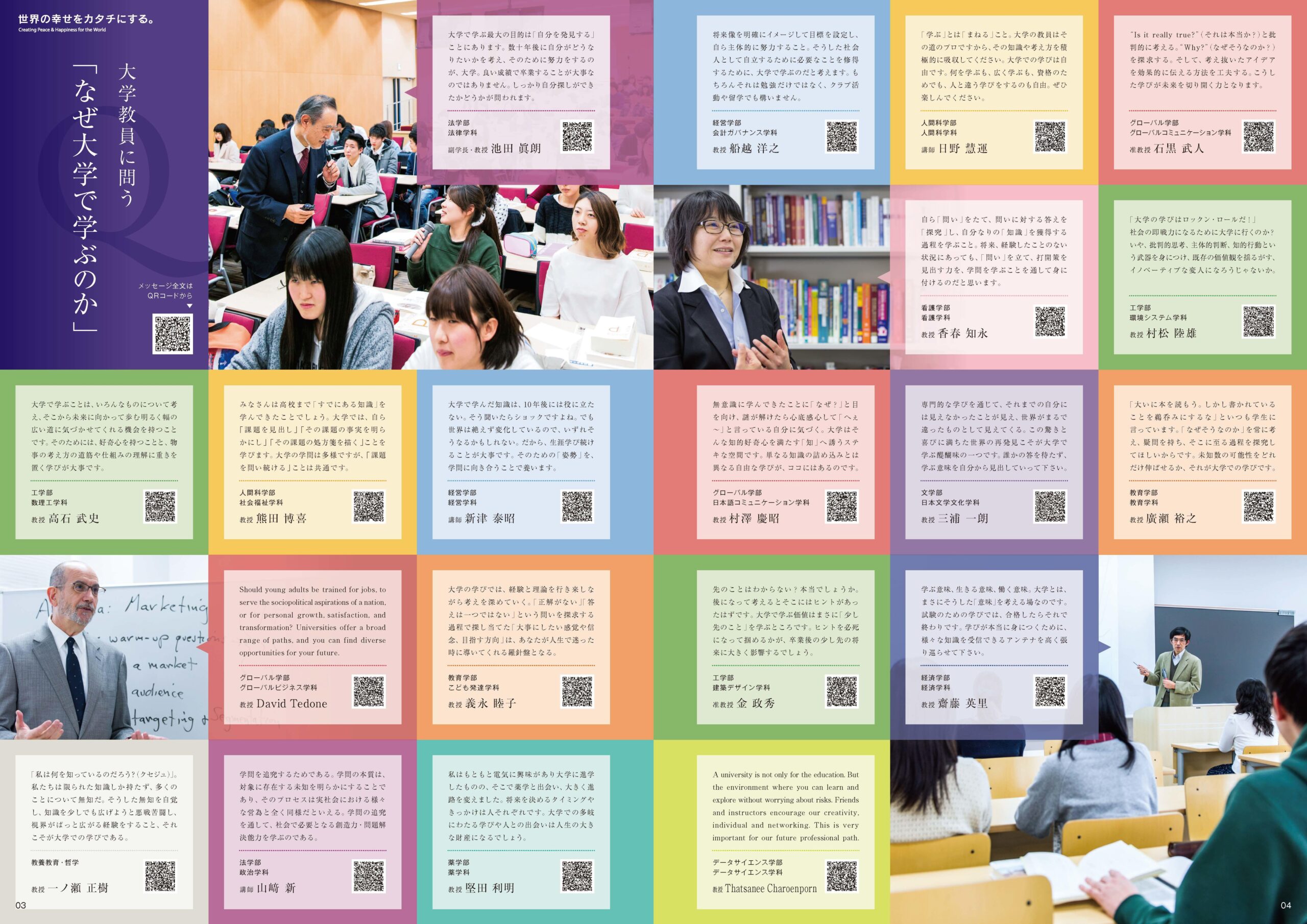 大学案内パンフレットには、教員メッセージのダイジェストを掲載。