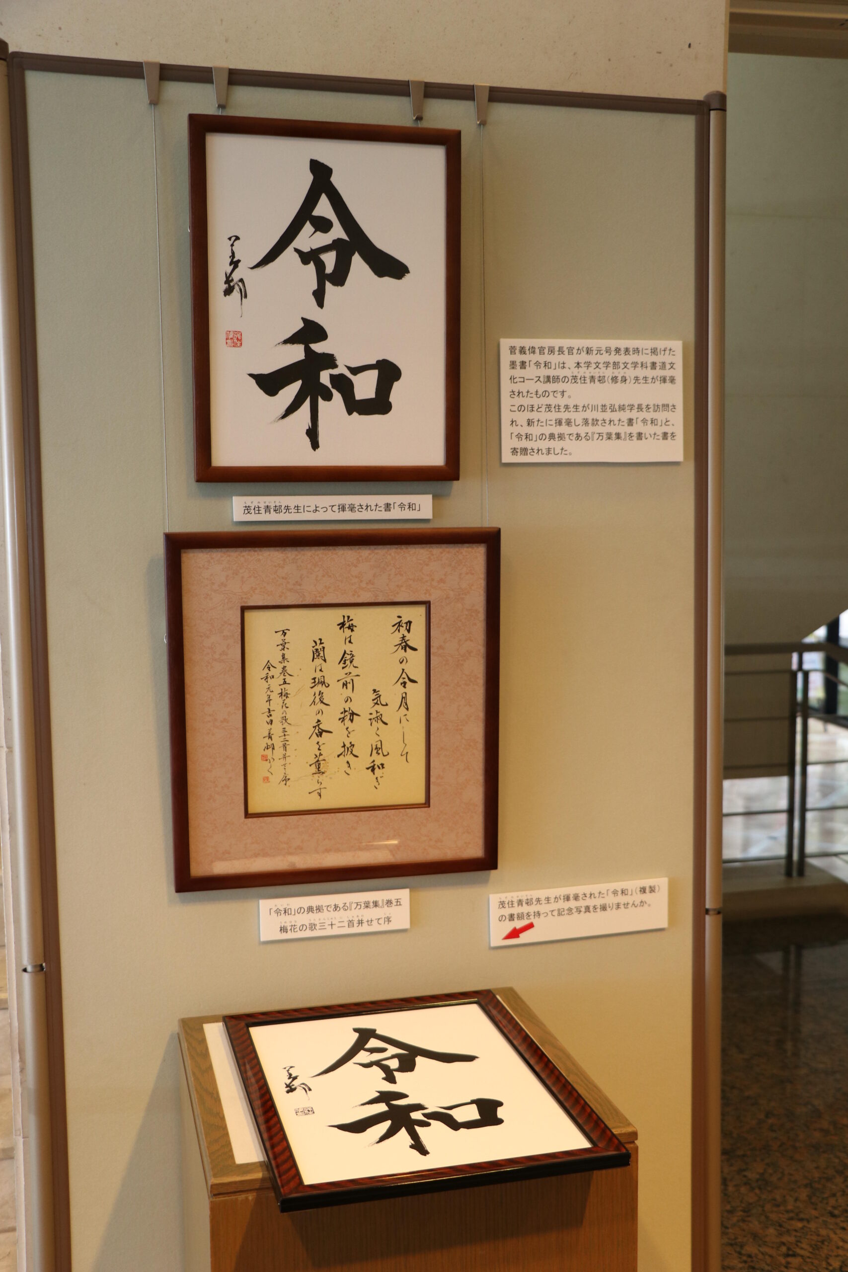 6月5日、茂住講師は川並弘純学長を訪問し、新たに揮毫し落款した「令和」と、「令和」の典拠である『万葉集』を書いた書を寄贈した。額縁は菅官房長官が新元号発表時に使用したものと同種のもので、学生たちが目にできるよう同大8号館ホールの入り口に飾られたほか、複製を実際に手に持って記念撮影できるスポットも用意されている。