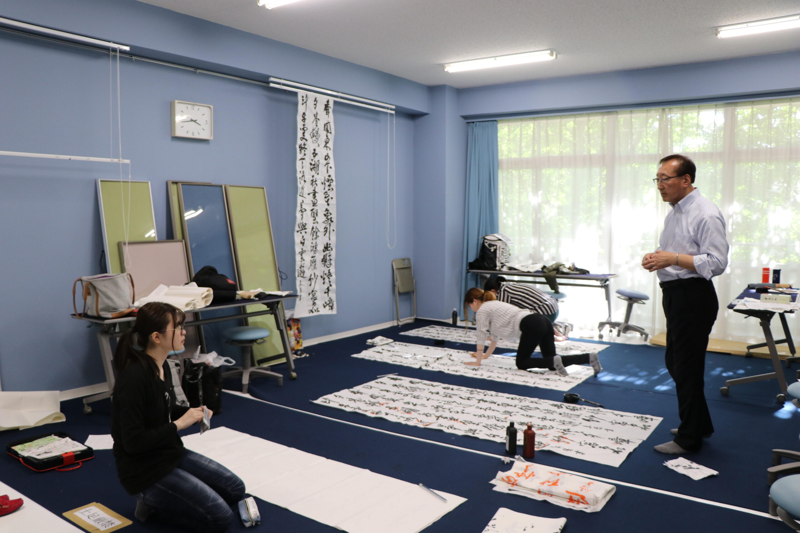 茂住講師は、同大通学課程ならびに通信教育課程にて「漢字かな交じり書法」「漢字作品制作法」の授業を担当。「漢字作品制作法1」の授業では、いわゆる一般的な書の技法ではなく、書を芸術的な創作作品に昇華するべくその制作方法を学ぶことができる。
