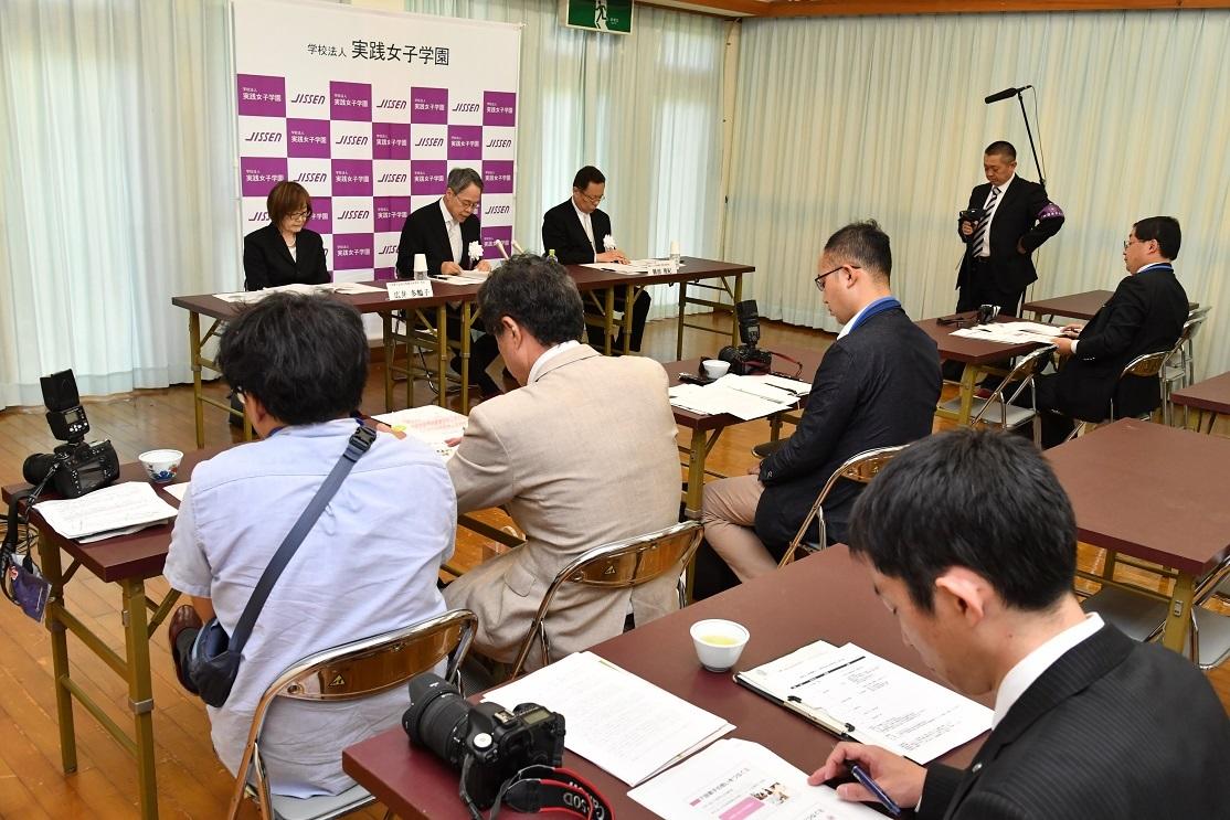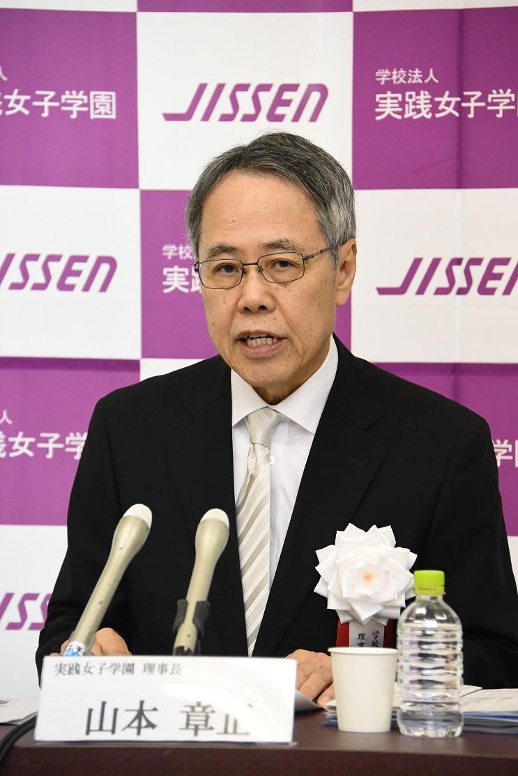 記者会見では、山本理事長は、「学園の発展を誓う場として、生誕の地である恵那市岩村町が最もふさわしいと考えました。また120年の歴史の中で、恵那市岩村町で創立記念式典を行うのは初めてのことです。恵那市岩村町で記念の日を迎えられたことに学園としての大きな意義を感じています。下田歌子先生の我が国の女子教育の扉を開いた功績は、現在の学園に引き継がれています。」と話し、そして「この4月に、さらに下田歌子先生の想いをつなぐ新制度として、大学と短期大学部で学生支援制度『Jissen Total Advanced Support(J-TAS)』をスタートさせました。学生一人一人を個別に支援する制度で、特徴としては、(1)個人の成長をデータベース化し、集団指導から個別指導にすること、(2)履修登録、生活支援、就職など、窓口を一元化し、学生にとって相談しやすい体制にすること、(3)卒業後のリカレント教育や転職などにも拡大していくこと、により『成長にコミットする学園』へと発展させていきます。」と話しました。また、恵那市岩村町との絆を一層深め、地元からの入学者を増やすために「創立120周年を記念し、恵那市岩邑中学校卒業者に対する奨学金を新設しました。」と述べました。
