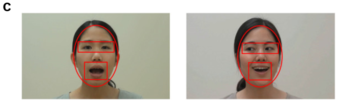 社会的な場面において相手の行為を模倣することは、新たな行為を効率的に学習すること、さらには、世代を超えて知識や技術を伝承すること(文化の蓄積)を可能にする、きわめて重要な認知能力です。たとえば、他者の音声を真似る「音声模倣」は、言語獲得において重要な役割を果たすと言われています。これまでの研究によって、ヒトは生後5ヶ月ごろまでに「あ」「い」「う」といった母音の音声を模倣し始めることがわかっています。しかし、他者からのどのような情報が音声模倣を促進する鍵となるのか,という点についてはわかっていませんでした。私たちの研究グループは、「発話者の口の動き」や「アイコンタクト」といった視覚情報が、音声模倣の促進に関連すると予測し、次のような実験を行いました。